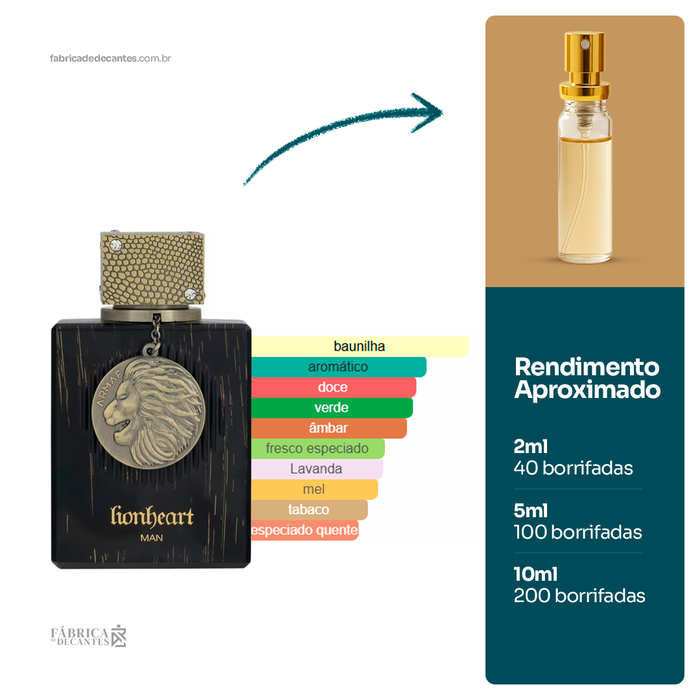 Club De Nuit Lionheart Man de Armaf é um perfume Oriental Fougére Masculino. Esta é uma nova fragrância. Club De Nuit Lionheart Man foi lançado em 2025. As notas de...