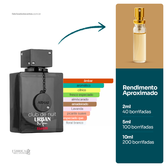 Club De Nuit Urban Elixir de Armaf é um perfume Masculino. Club De Nuit Urban Elixir foi lançado em 2022. As notas de topo são: Bergamota, Pimenta Rosa, Flor de...