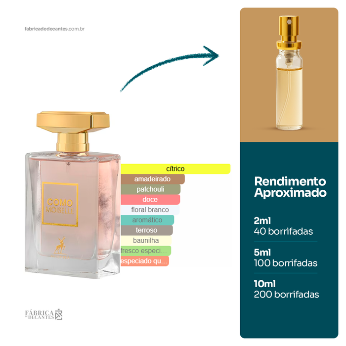 Como Moiselle de Maison Alhambra é um perfume Oriental Floral Feminino. Como Moiselle foi lançado em 2022. As notas de topo são: Bergamota, Laranja, Mandarina e Flor de Laranjeira. As...
