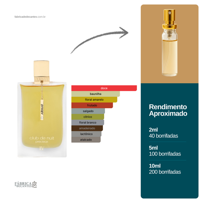 Club de Nuit Precieux IV de Armaf é um perfume Floral Frutado Gourmand Feminino. Esta é uma nova fragrância. Club de Nuit Precieux IV foi lançado em 2025. O perfumista que assina esta fragrância é...