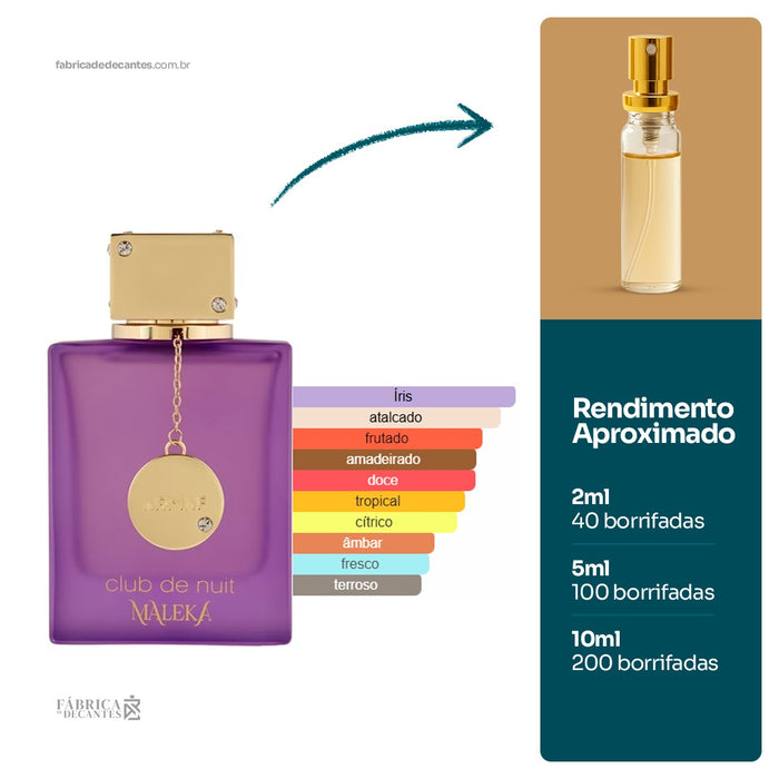 Club De Nuit Maleka de Armaf é um perfume Floral Frutado Feminino. Esta é uma nova fragrância. Club De Nuit Maleka foi lançado em 2025. O perfumista que assina esta...