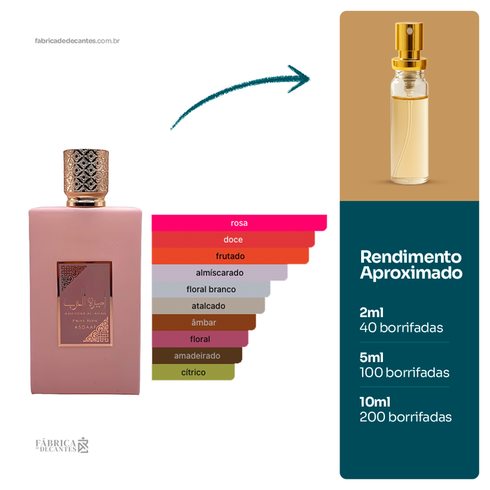 Ameerat Al Arab Prive Rose de Asdaaf é um perfume Floral Frutado Feminino. Ameerat Al Arab Prive Rose foi lançado em 2023. As notas de topo são: Morango, Uvas e...