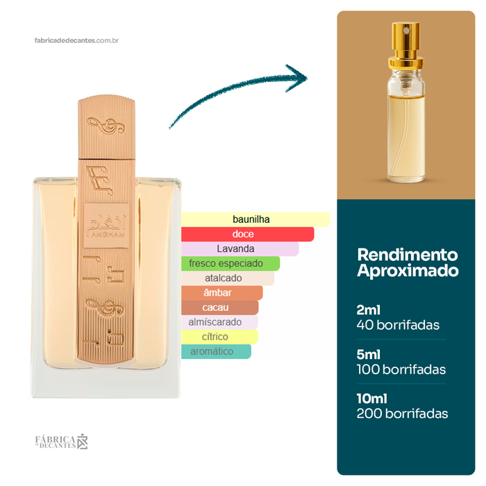 Angham de Lattafa Perfumes é um perfume Oriental Baunilha Compartilhável. Esta é uma nova fragrância. Angham foi lançado em 2024. As notas de topo são: Gengibre, Mandarina e Pimenta Rosa....
