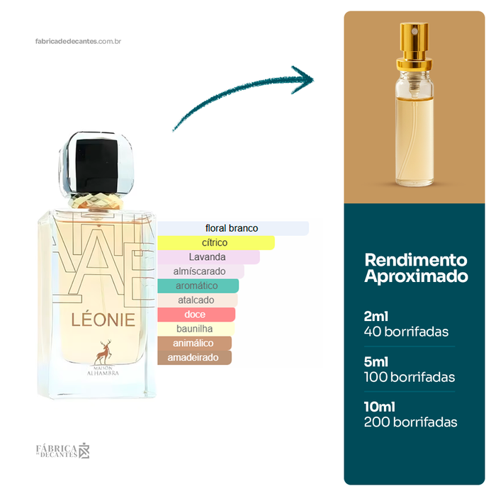 Léonie de Maison Alhambra é um perfume Floral Feminino. Léonie foi lançado em 2022. As notas de topo são: Lavanda, Mandarina, Petitgrain e Groselha Preta. As notas de coração são:...