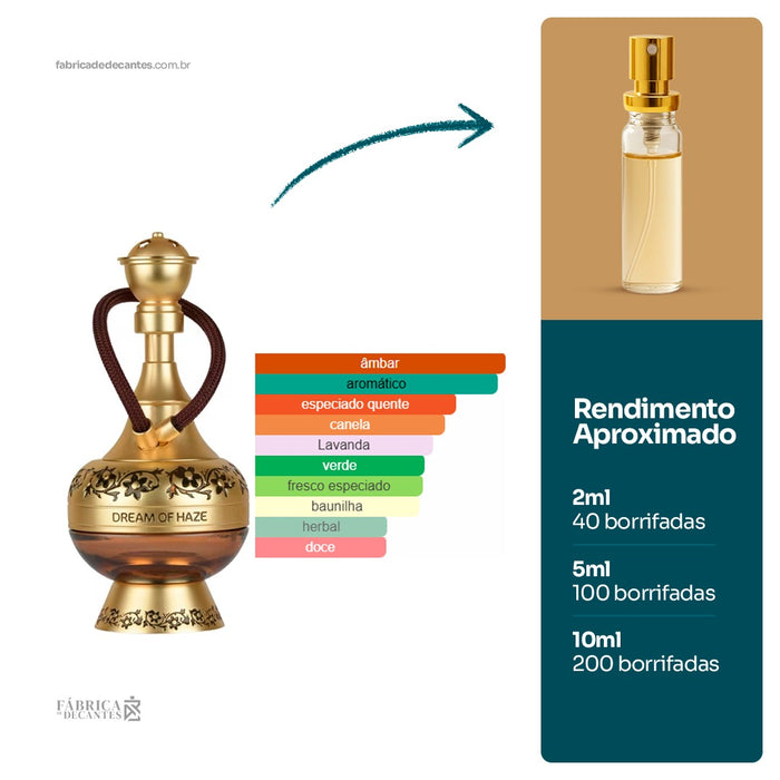 Dream Of Haze de Lattafa Perfumes é um perfume Oriental Fougére Compartilhável. As notas de topo são: Hortelã e Narguilé de Maçã. As notas de coração são: Canela, Lavanda e...