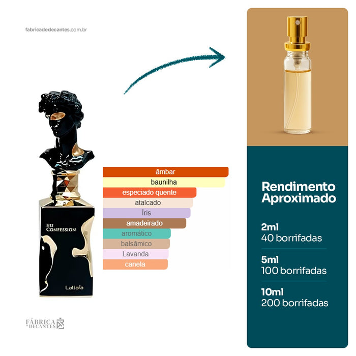 His Confession de Lattafa Perfumes é um perfume Oriental Amadeirado Masculino. Esta é uma nova fragrância. His Confession foi lançado em 2024. As notas de topo são: Lavanda, Canela e...