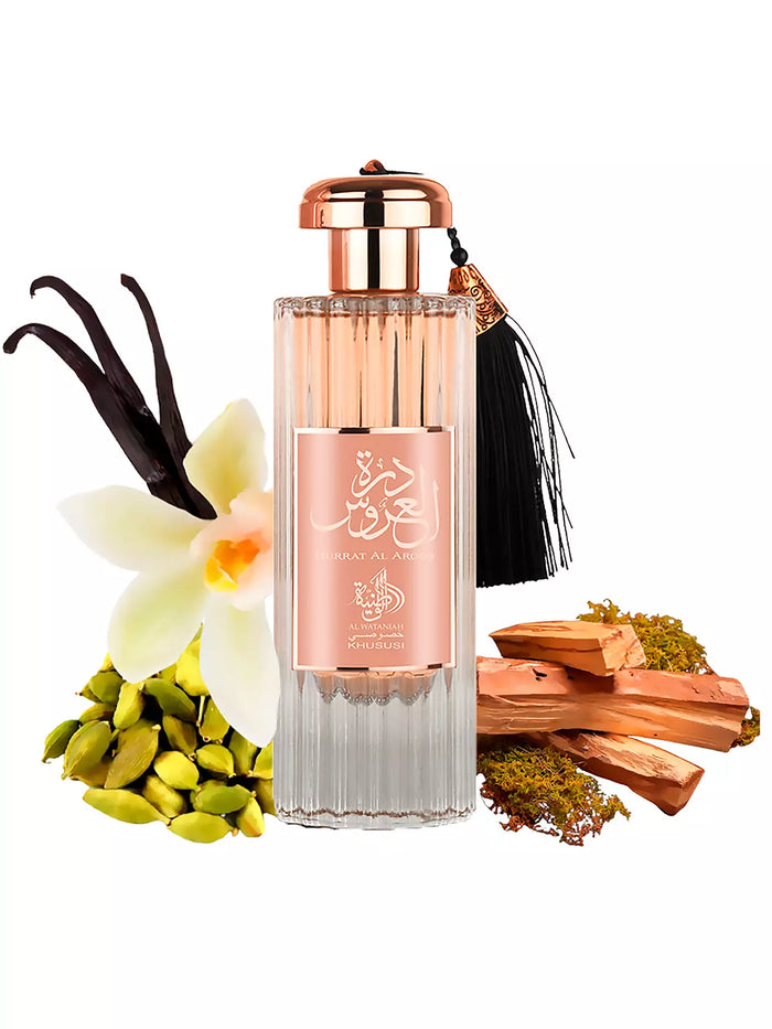 Durrat Al Aroos de Al Wataniah é um perfume Oriental Feminino. Durrat Al Aroos foi lançado em 2022. As notas de topo são: Almíscar Branco e Nagarmota ou Óleo de...